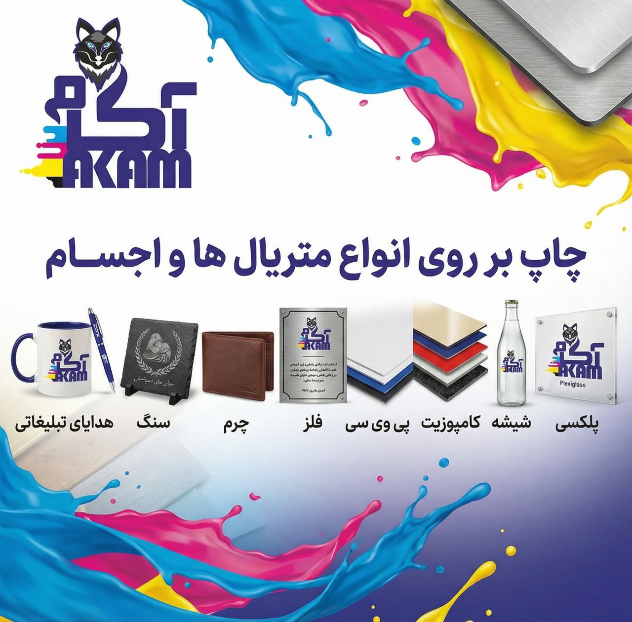 مرکز چاپ و هدایای سازمانی آکام با بهره‌گیری از تجهیزات پیشرفته، چاپ UV و حک لیزر با کیفیت صادراتی ارائه می‌دهد.